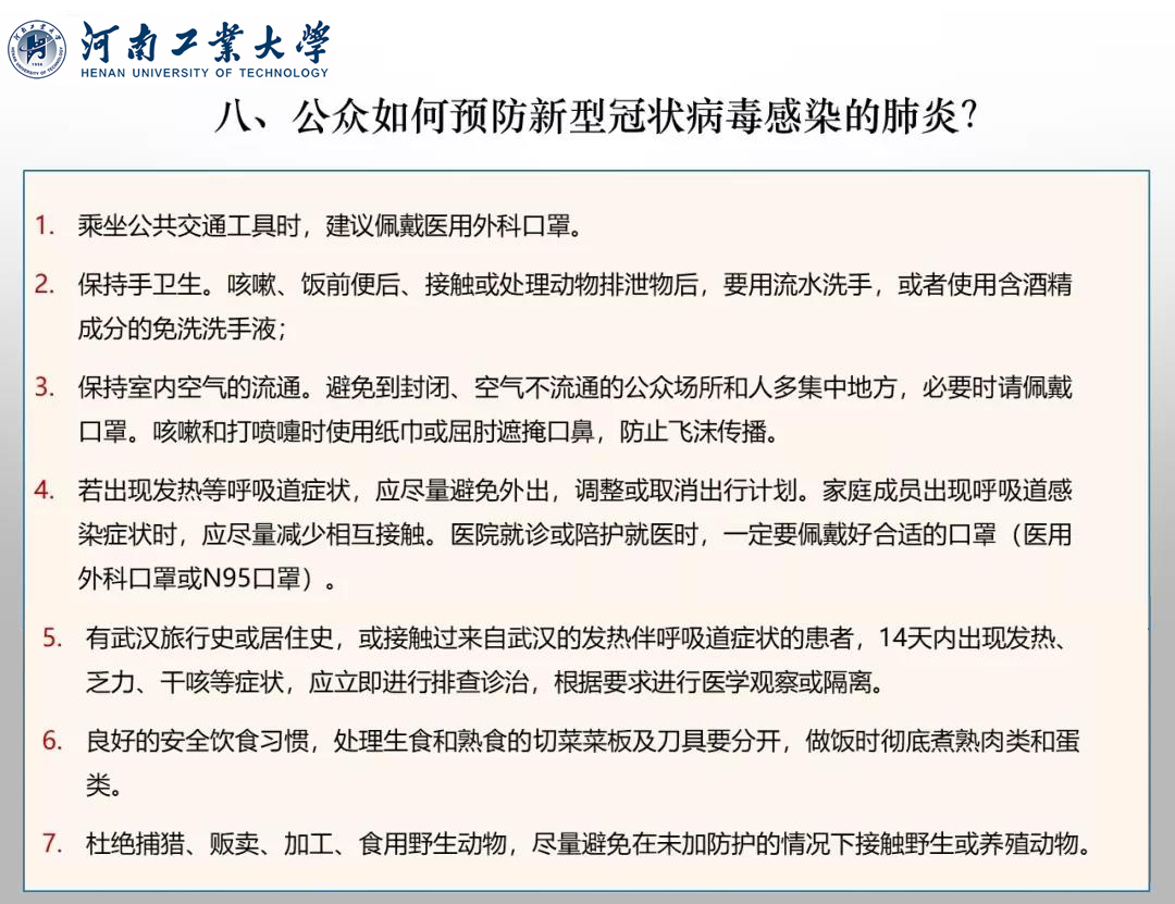 河南工業大學新型冠狀病毒感染的肺炎疫情防控知識宣傳手冊