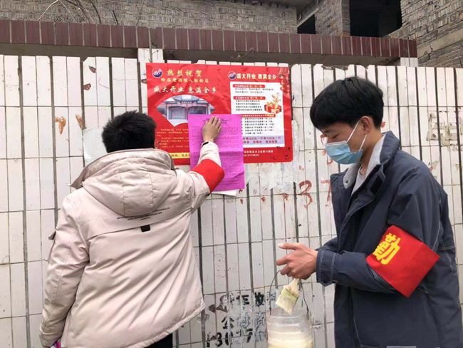 這支志愿者團隊先是學習此次疫情相關知識,而后在街道,轉彎,公廁等貼示公告,向村民講解如何使用口罩、酒精等基本防護用品并將其演示給村民。對于村里的老人們,他們更是耐心講述相關防范措施,告誡大家不要串門扎堆兒,整村推進,落實到戶。