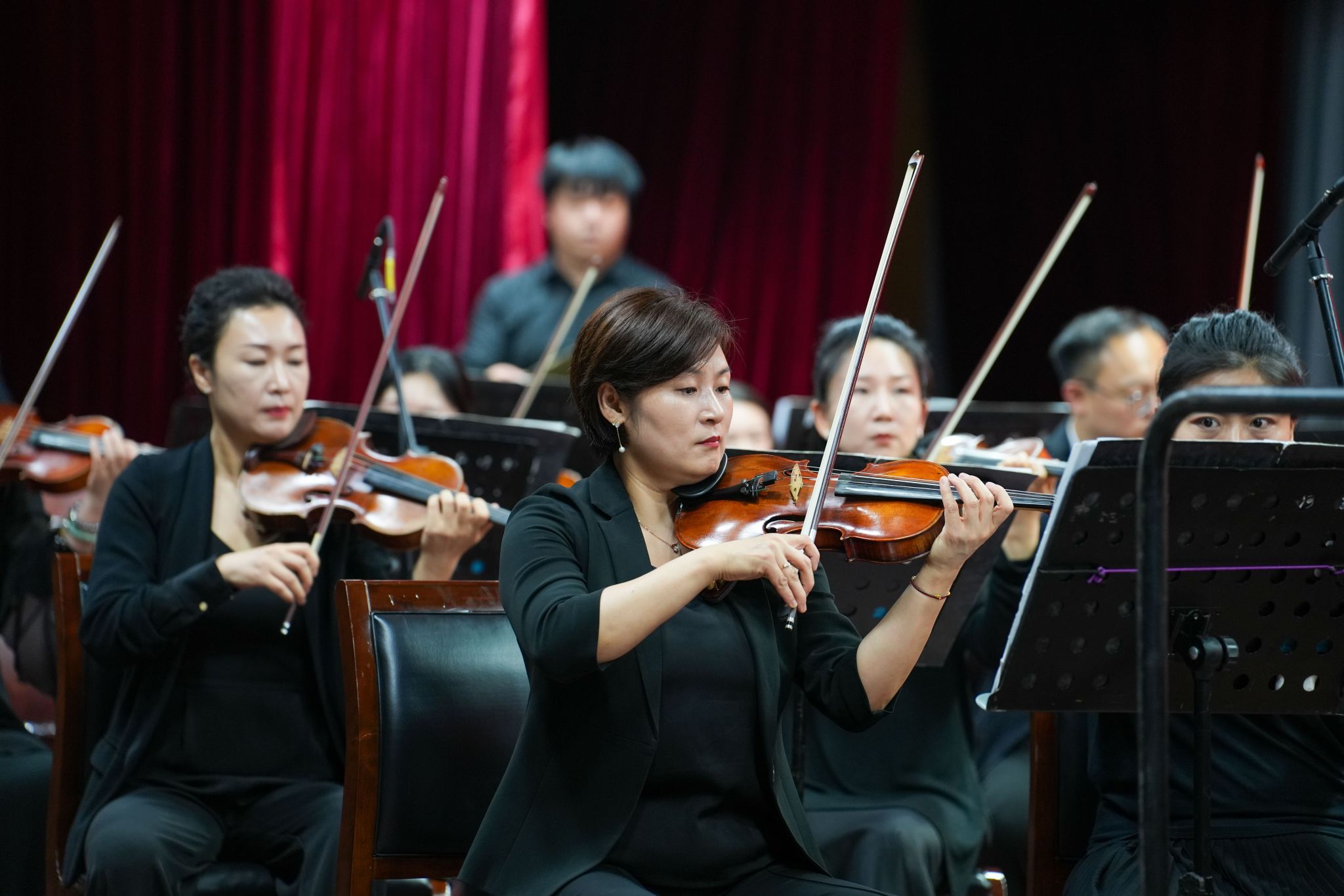 本次音樂會特邀中國交響樂團馬季先生任樂團指揮。音樂會在管弦樂《卡門》序曲中拉開帷幕,電影《海霞》組曲“織網”和“豐收”悅耳動聽,仿佛帶領大家走進海邊小鎮漁民們勤勞而充滿希望的生活畫面;《溜冰圓舞曲》優雅舒緩,輕松歡快,讓大家感受到音樂的樂趣;伴隨著《匈牙利舞曲第五號》演奏,在場師生體驗了一場充滿激情與活力的音樂;交響組曲《炎黃風情》用絢麗多彩的旋律講述中華大地上的動人故事,引發共鳴;《大起板》旋律奔放,充滿活力,讓大家感受到獨特的中原文化內涵;弦樂合奏《帕拉迪奧》《良宵》,管弦樂演奏《春之聲圓舞曲》《北京喜訊傳邊寨》等作品充分展現了經典音樂之作的魅力,音樂會在《我的祖國》豪邁熱烈的旋律中圓滿結束。