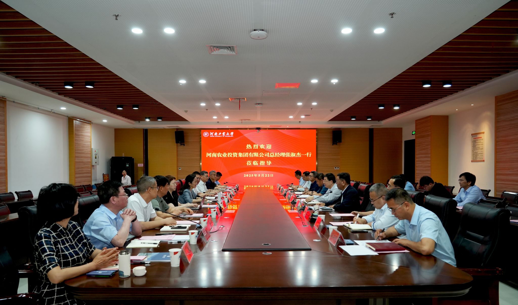 5月22日,河南農業投資集團有限公司(以下簡稱“河南農投集團”)總經理、副董事長張淑杰,黨委委員、副總經理張峰一行來校調研交流。校黨委書記劉志軍出席交流座談會并致辭,學校及河南農投集團相關部門負責同志參加會議。校紀委書記、監察專員張玉安主持會議。