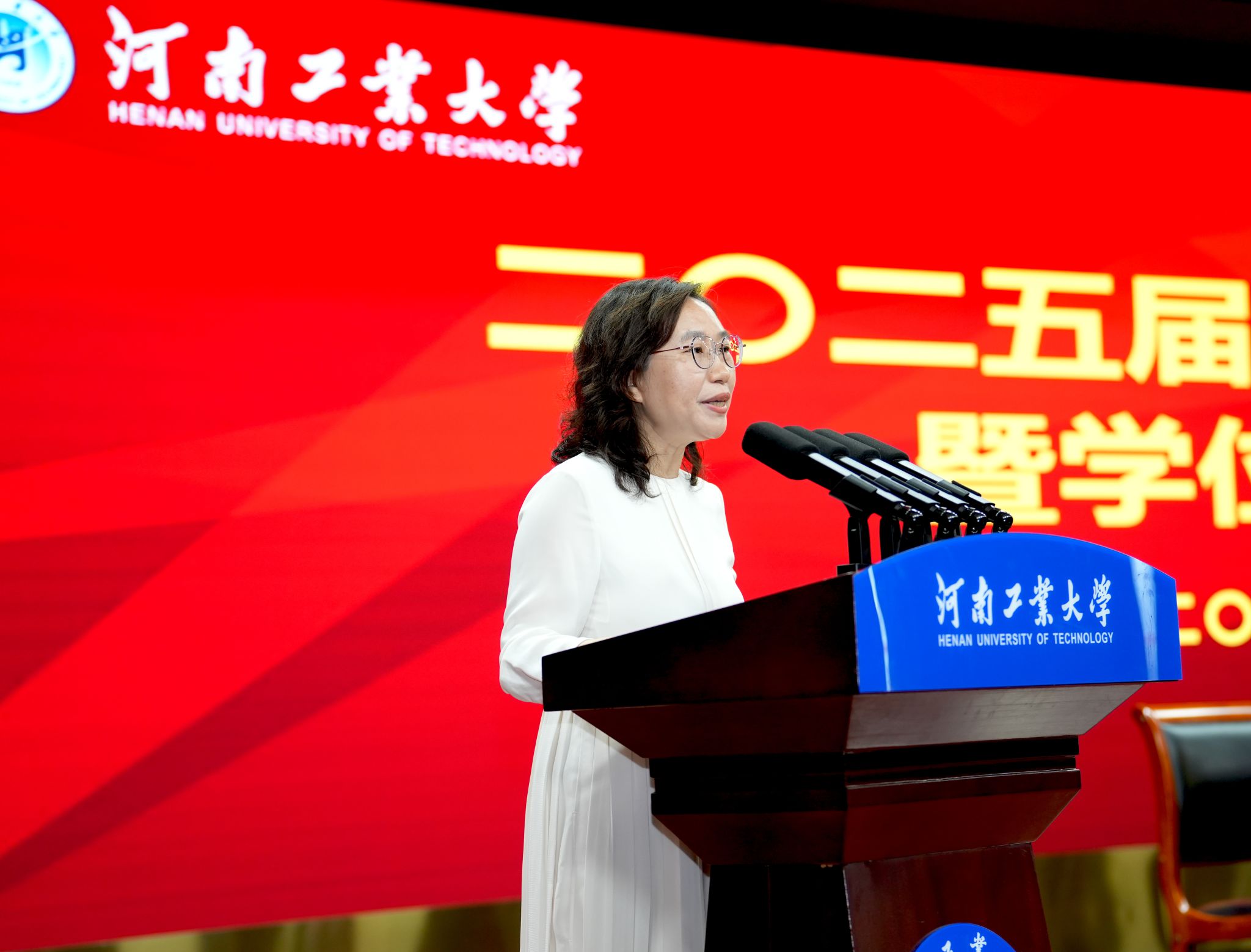 牢記教誨赴山海,挺膺擔當再啟程。6月6日上午,河南工業大學2025屆畢業生畢業典禮暨學位授予儀式在蓮花街校區學術報告中心D303報告廳隆重舉行。全體在校校領導在主席臺就座,學校各單位負責人,教師代表及畢業生、留學生代表參加畢業典禮。校長、校學位評定委員會主席吳智深以“志存高遠 篤行不怠 奮力書寫無悔青春的時代華章”為題深情寄語全體畢業生,典禮儀式由副校長鄧淼磊主持。