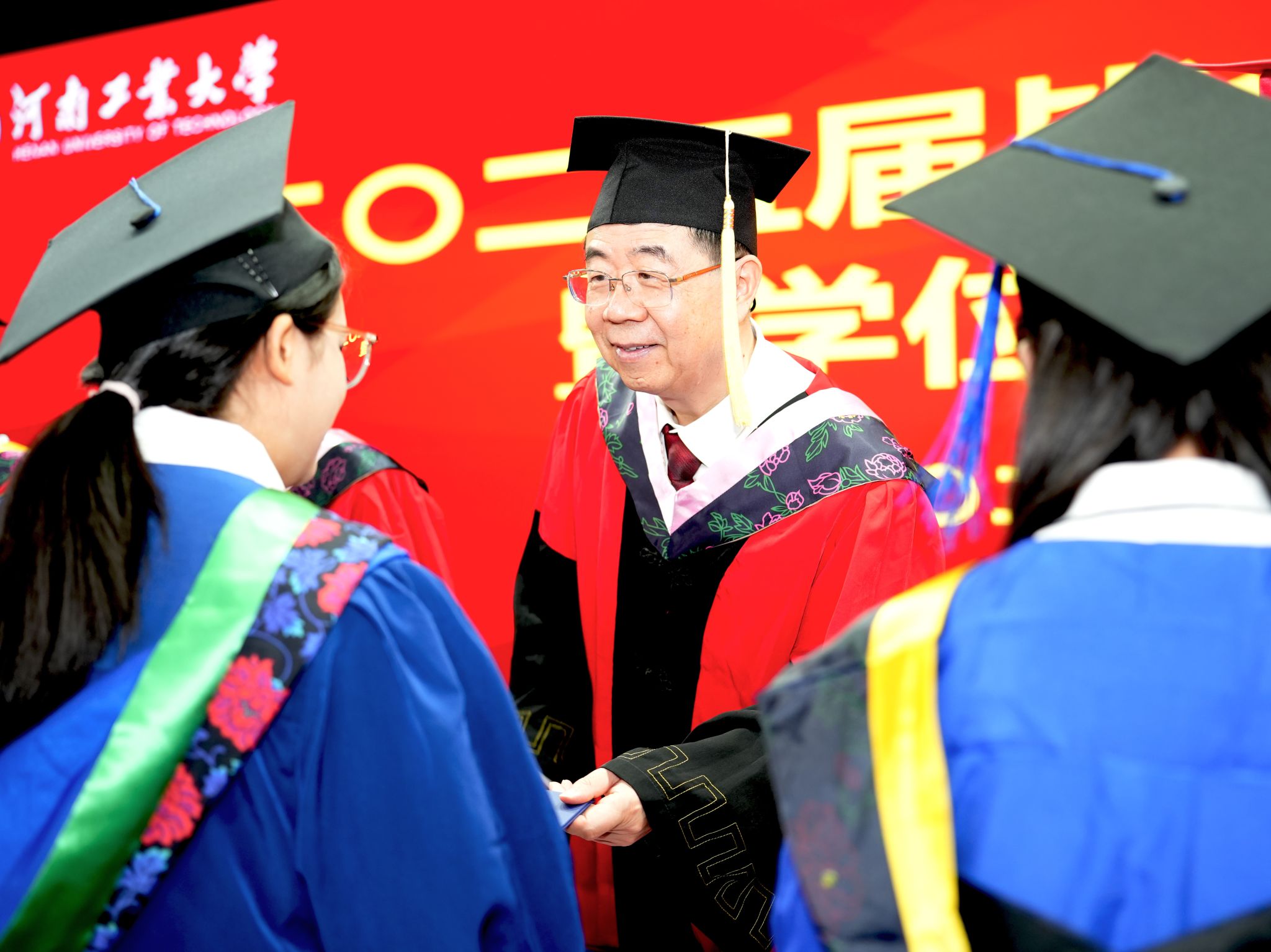 上午九時整,伴隨著雄壯的國歌聲,河南工業大學2025屆畢業生畢業典禮暨學位授予儀式拉開帷幕。