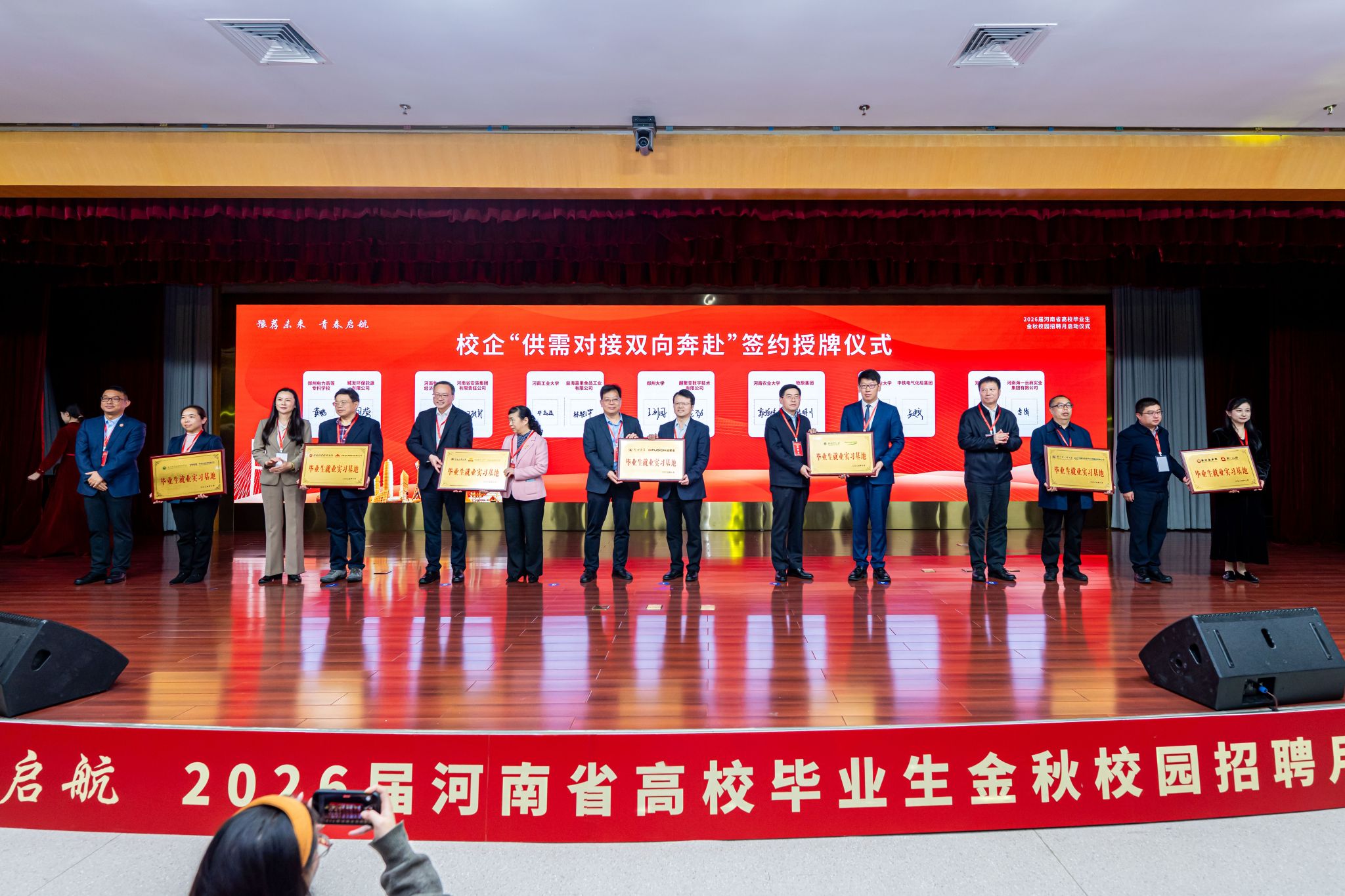 啟動儀式上,鄭州大學(xué)等7所高校與超聚變數(shù)字技術(shù)有限公司等7家企業(yè)簽訂“校企供需對接”合作協(xié)議,頒發(fā)“畢業(yè)生就業(yè)實習(xí)基地”牌匾。與會領(lǐng)導(dǎo)共同啟動 2026 屆河南省高校畢業(yè)生金秋校園招聘月,并發(fā)布《2026屆河南省普通高校畢業(yè)生生源信息匯編》《河南省大學(xué)生就業(yè)創(chuàng)業(yè)服務(wù)指南》、河南省高校畢業(yè)生就業(yè)市場及全省高校校園招聘活動計劃。