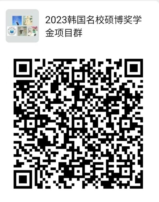 有意愿申報(bào)項(xiàng)目的學(xué)生,可加入微信群“2023韓國名校碩博獎(jiǎng)學(xué)金項(xiàng)目群”,了解最新、最全的申請信息。