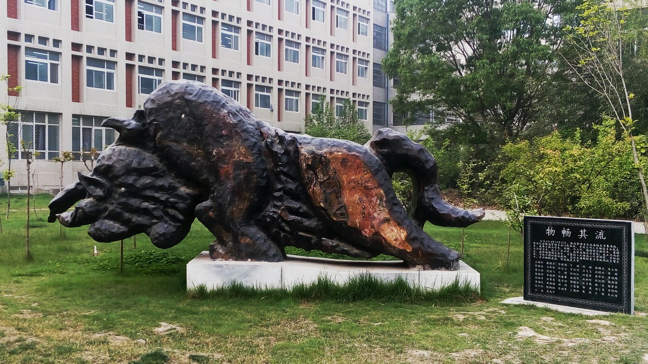 牛,安于糧外的草食,樂于奉獻,從遠古走到現在,總在釋放正能量。歷史上寫就了光彩,現實中又鼓舞著人們奮進,于是被熱選為雕塑對象,用凝固藝術展現它的情操美。正如校友們說,捐此靈璧石牛是為了“褒揚工大物流人吃苦耐勞、開拓創新、百折不撓的物流精神”,把物流精神和牛精神結結實實劃了等號。