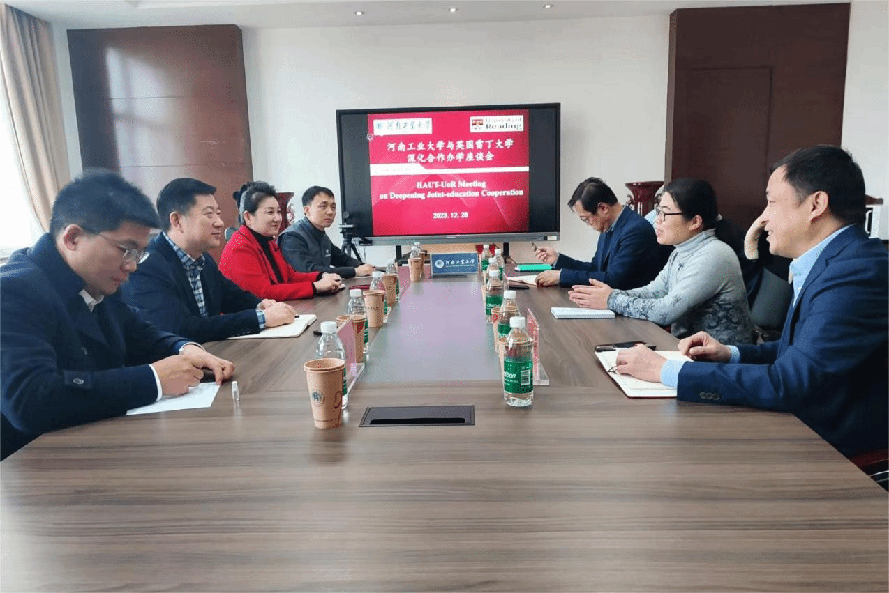 In order to further strengthen cooperation between the two universities, expand areas of cooperation, and deepen the content of cooperation, on December 28th, our university held a "Seminar on Deepening Cooperative Education between Henan University of Technology and the University of Reading, UK" in Conference Room A606 of the administrative building. Li Huanfeng, Vice President of HAUT, Dr. Cheng Qiaofen, the person in charge of the China Cooperative Education Program at the University of Reading, and key leaders from the International Exchange and Cooperation Office, the School of International Education, the School of Grain, Oil, and Food, and the School of Bioengineering attended the meeting.