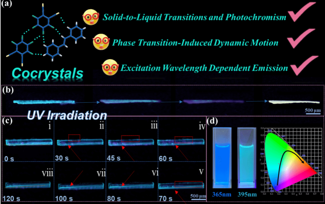近日,我校化學(xué)化工學(xué)院青年教師李樹珍博士在國際頂級學(xué)術(shù)期刊《Angewandte Chemie International Edition》(影響因子IF = 16.1)發(fā)表題為 “Manipulating Dynamic Light-Driven Solid-Liquid Transition and Static Reversible Photochromism by an Organic Cocrystal Strategy” (DOI: 10.1002/anie.202500238)的研究性論文。李樹珍博士為該論文的第一作者,碩士研究生黃雪勇為第二作者,其博士后合作導(dǎo)師曹曉雨教授為通訊作者,河南工業(yè)大學(xué)為唯一署名和通訊單位。