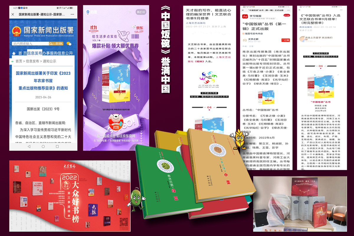 2022年9月29日,《中國飯碗》叢書入選江蘇省“書寫新時代、獻禮二十大”主題出版重點出版物。(http://www.7ce5.xyz/info/1064/59425.htm)
