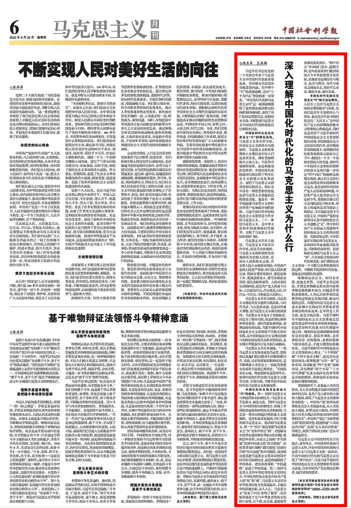 《中國社會科學報》(3月30日第六版):深刻理解中國化時代化的馬克思主義為什么行