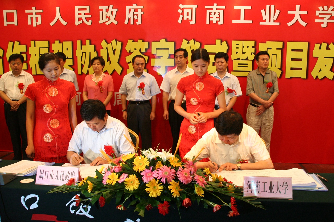學校積極探索政產學研用合作發展模式,與國家糧食局科學研究院、河南省科學院、鄭州機械研究所、鄭州磨料磨具磨削研究所等開展校研合作;與鄭州市、周口市、鶴壁市人民政府和省商務廳、工業和信息化廳等開展校地合作;與中國儲備糧管理總公司、中糧集團、上海良友集團、雙匯集團、三全集團、思念集團、許繼集團、貴州達眾磨料磨具有限公司等開展校企合作;作為股東高校之一發起組建了河南省大學科技園,與社會共建了“河南省工業技術研究院”、“河南省民營經濟研究院”、“河南產業發展研究院”等。